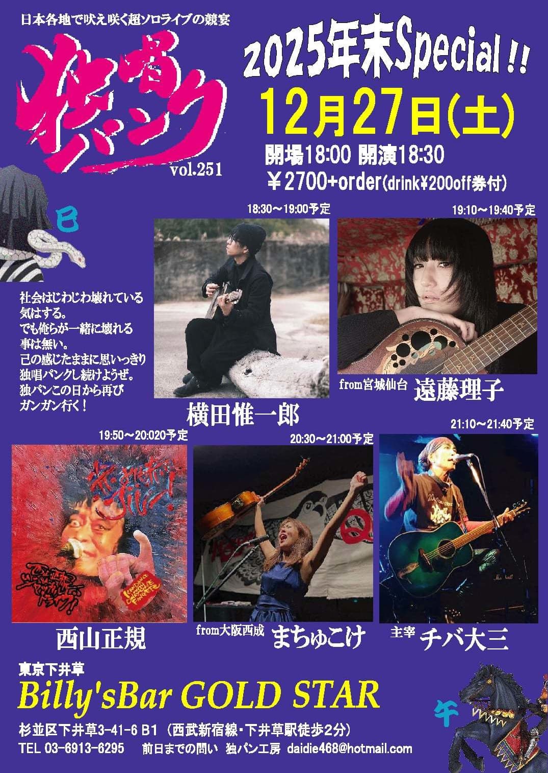2025年12月27日(土)下井草Billy’s Bar GOLDSTAR |