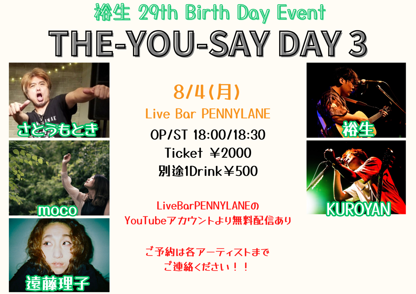 ※チケットのご予約は各アーティストまで